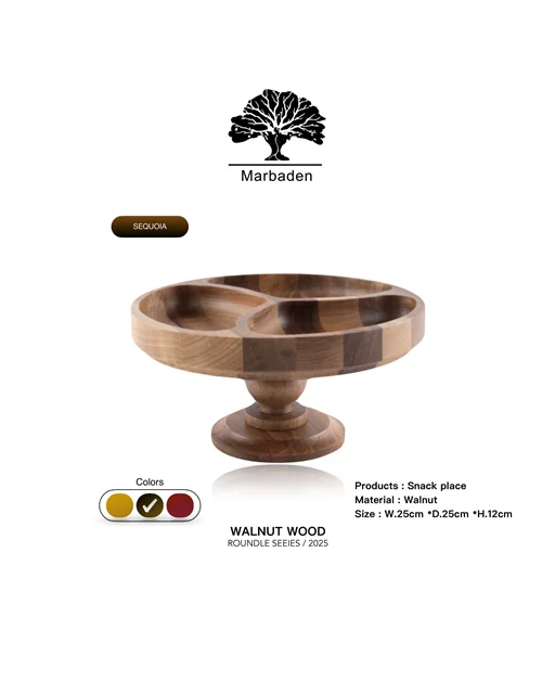 طراحیشده با سه بخش مجزا برای سرو انواع تنقلات، میوه، بیسکویت، کوکی و خوراکیهای پذیرایی. انتخابی شیک، کاربردی و اصیل برای هر میز مهمانی.