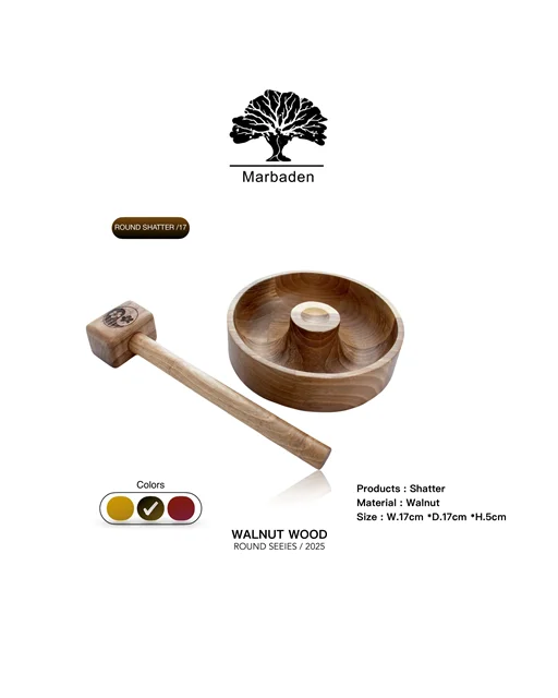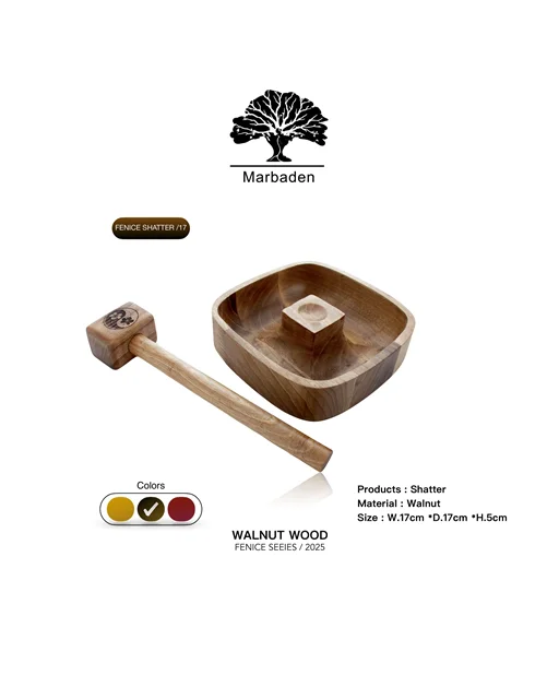 در دو مدل فنیس (مربع با گوشههای گرد) و مدل گرد. کاسه با قطر ۱۷ سانتیمتر و طراحی برآمدگی داخلی، مناسب قرار دادن گردو روی آن و خرد کردن آسان با چکش مخصوص.