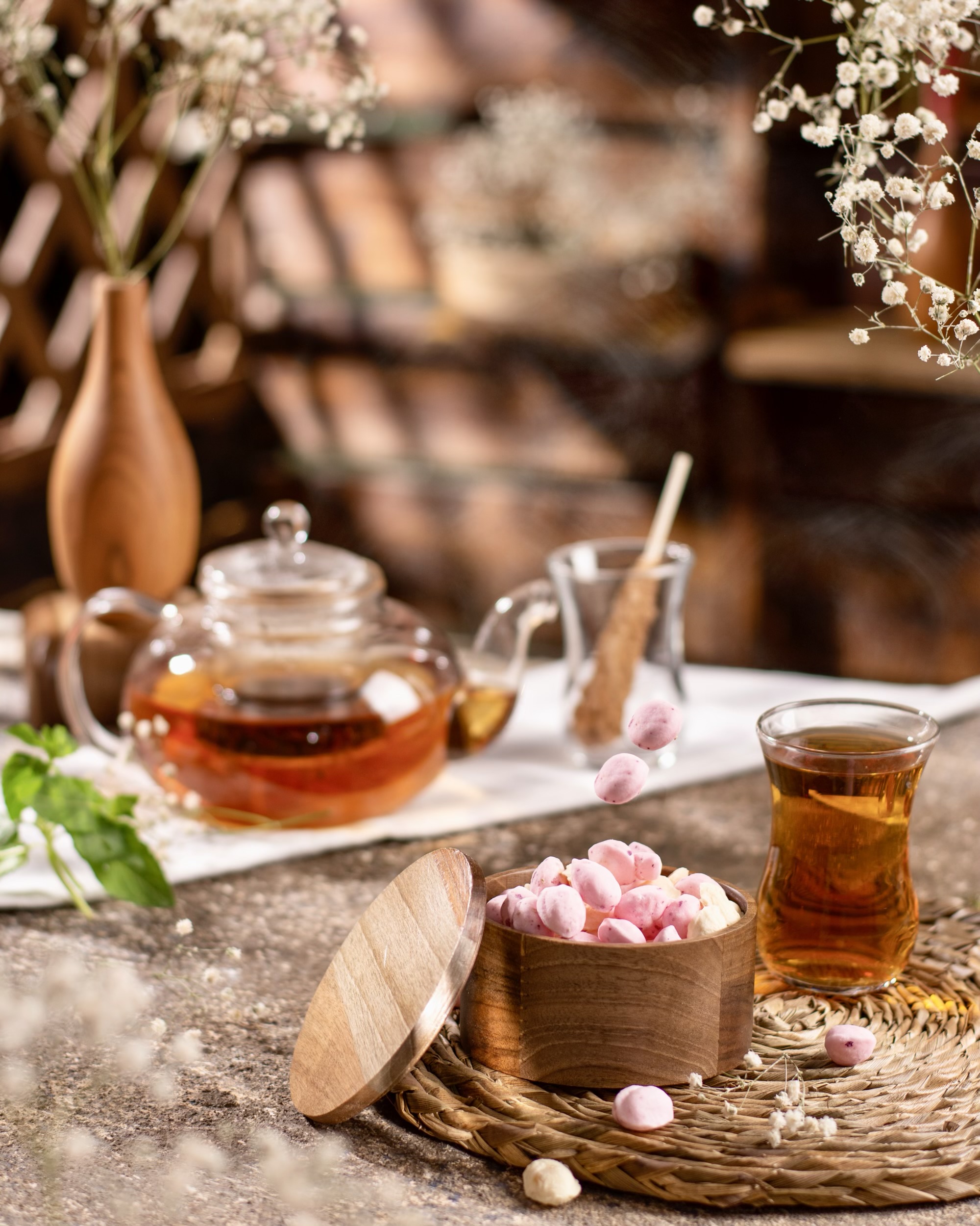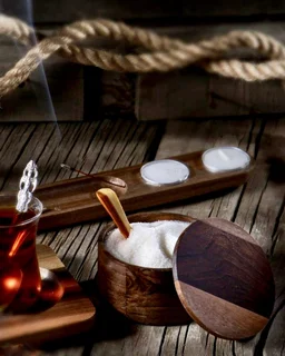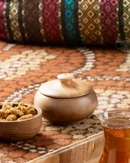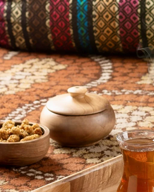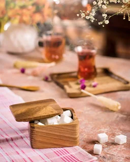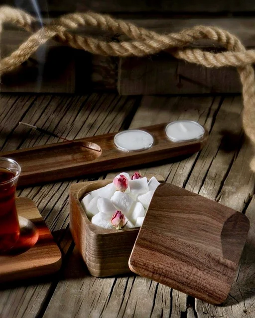 قندانهای چوب گردو با بافت گرم و طبیعیشان، جلوهای خاص به میز پذیرایی میدهند.
